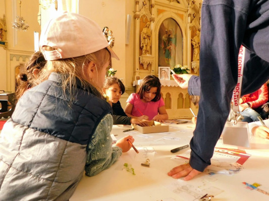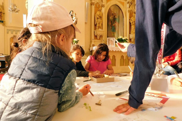 Zajímavý program pro děti s možností vyrábění - na faře vedle kostela (mimo časy komentovaných prohlídek pro děti v kostele tzn. 18:55-19:10 a 19:50-20:05) |