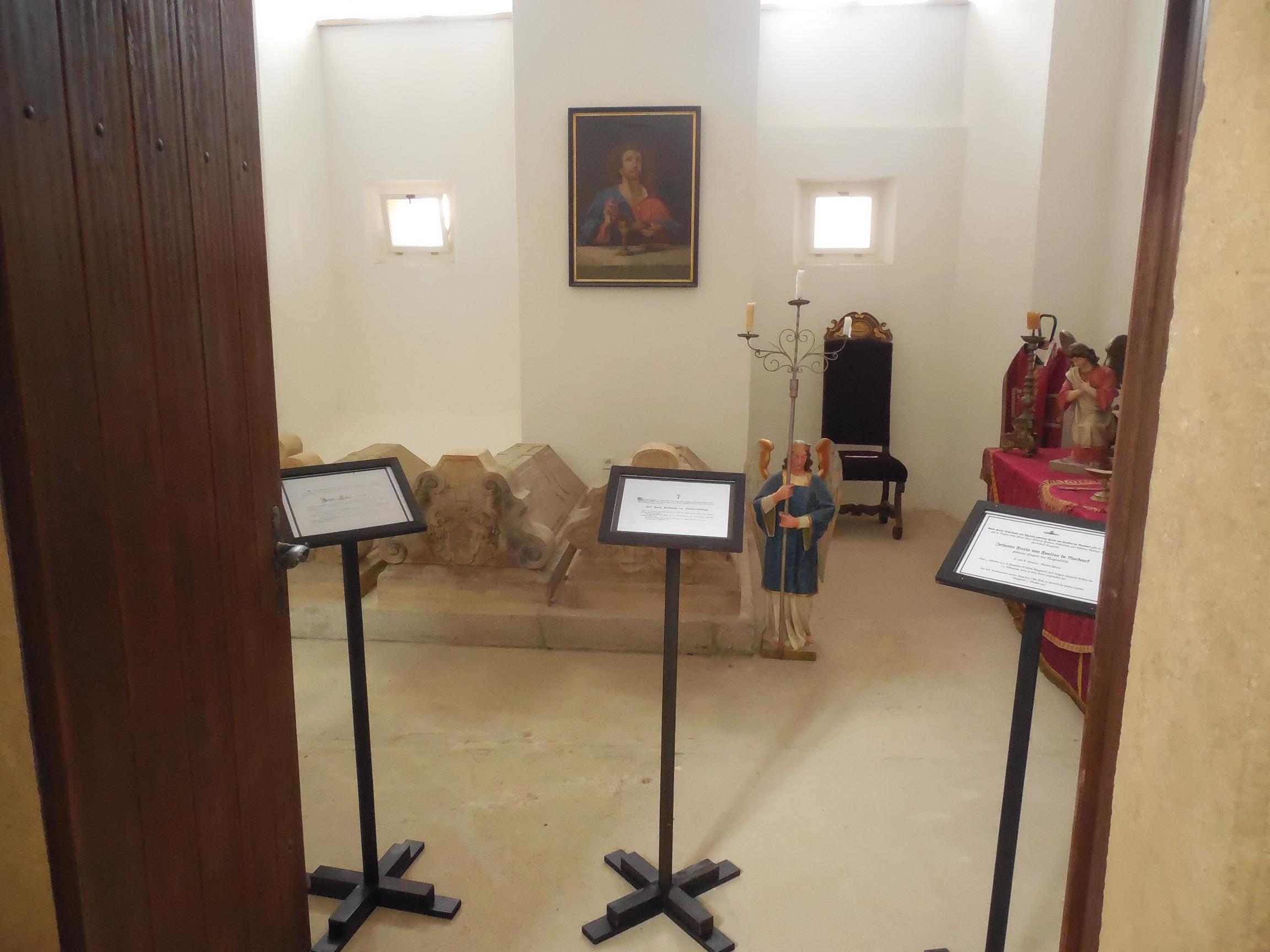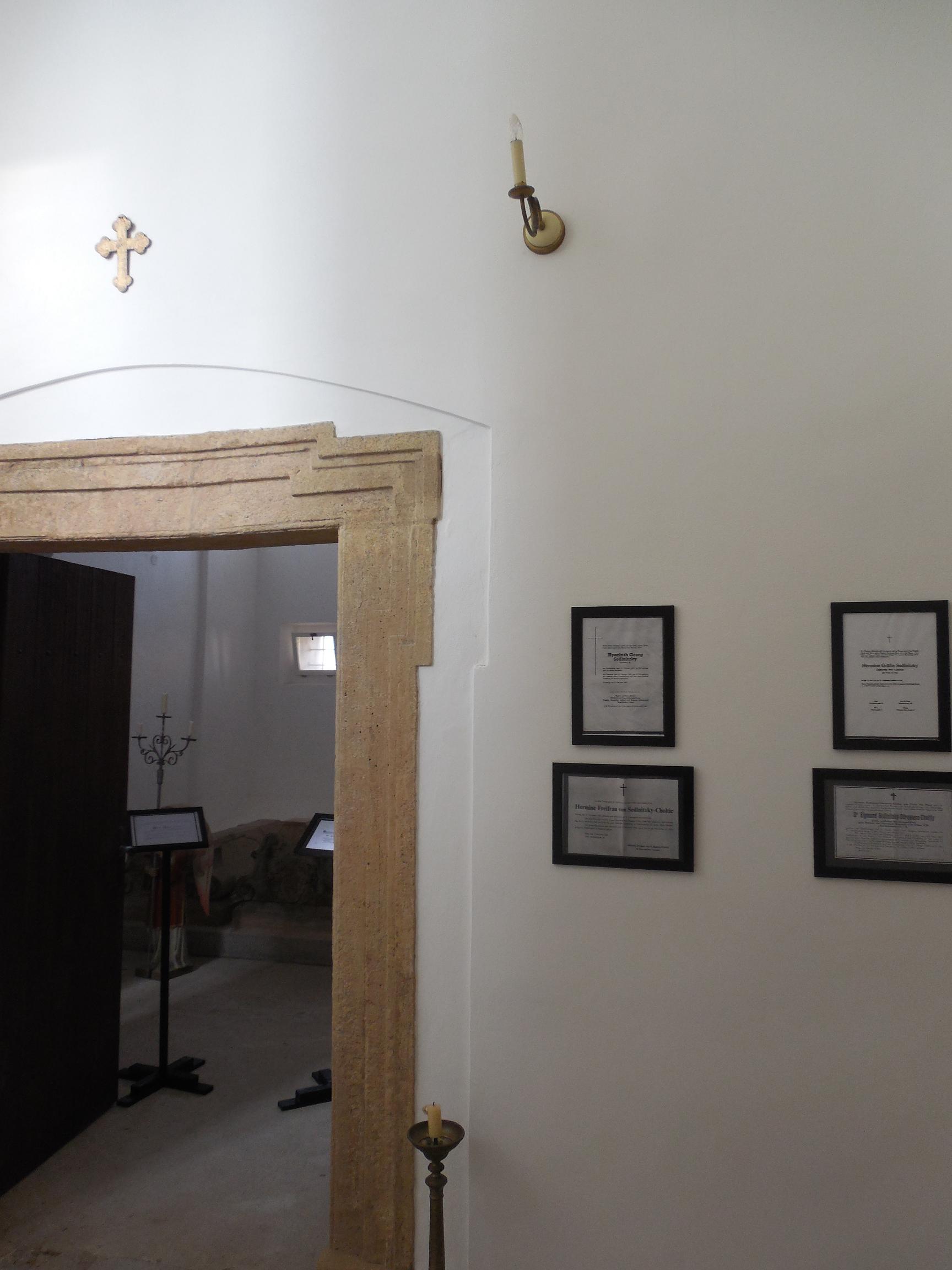 V letech 2012 - 2013 prošla zámecká kaple celkovou rekonstrukcí. Do kaple byly převezeny po náročné renovaci tři náhrobky příslušníků rodu Sedlnitzkých - Odrowas z Choltitz. V sákristii jsou instalovány parte majitelů našeho zámku a jejich příbuzných.