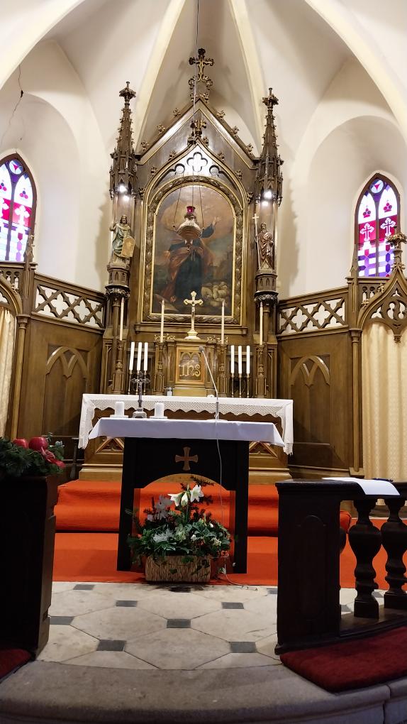 Architektura hlavního oltáře je pseudogotická, obraz sv. Petra z 18. století však byl ponechán, stejně tak některé části kazatelny a mřížka pro svaté přijímání. Presbytář má zachovánu původní dispozici, tj. pevný oltář, u něhož stojí kněz obrácen tváří ad orientem.