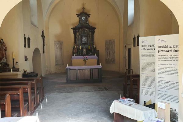 Dominantou medvědické návsi je kostel sv. Kateřiny Alexandrijské, který pochází z poloviny 14. století a jeho gotická dispozice je patrná dodnes.