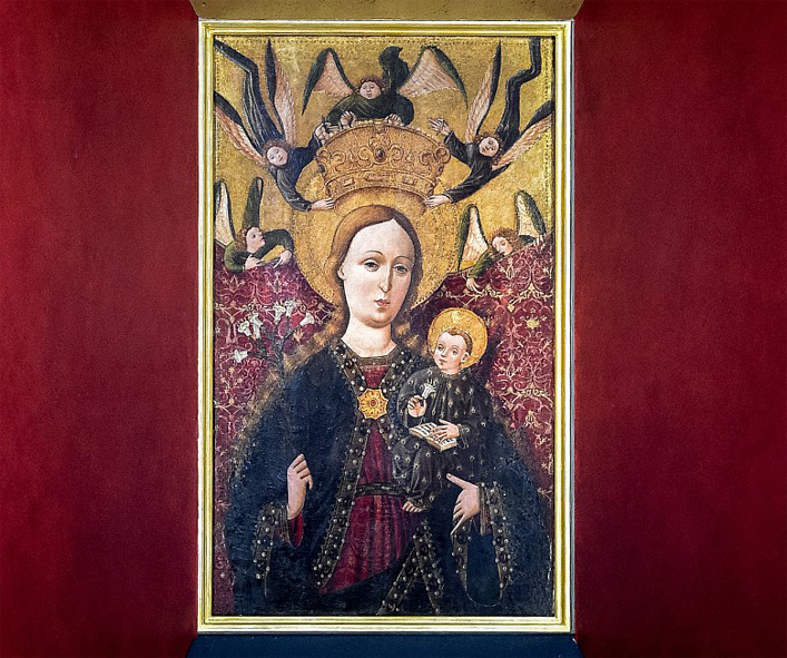 Nyní je ve zvýšeném přízemí moderní kaple. Její nadčasový minimalistický interier je vytvořen z kombinace betonu a travertinu.