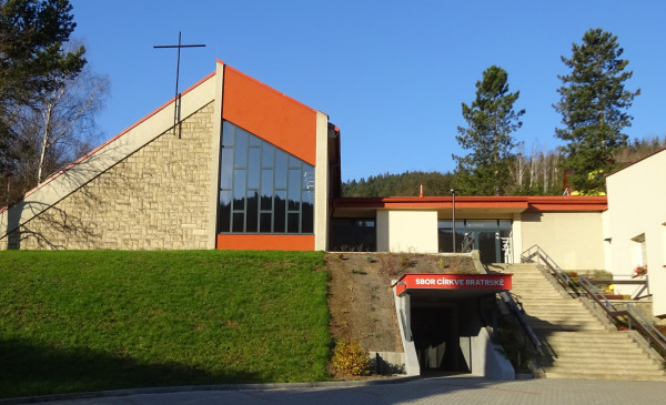 Současná budova modlitebny byla vystavěna v letech 1968 až 1972 dle návrhu Ing. arch. Pavla Vaněčka.