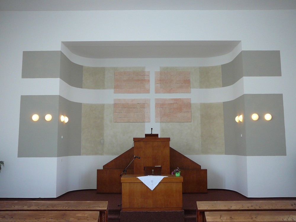 V roce 2012 bylo průčelí kostela upraveno podle návrhu ak. arch. Barbory Veselé. Dominuje mu bílý kříž, zvýrazněný cihlovým podkladem a jemnou šedou výmalbou.
