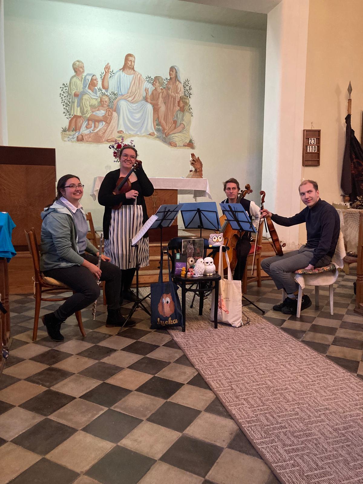Dobří holubi i sovy se vracejí. Uskupení konzervatoristů Trio Bubo ve složení Magdalena Čapková (housle), Lucie Mašková (flétna) a Matěj Kraus (viola), možná i s dalšími hosty přiveze vážnou i nevážnou hudbu. |