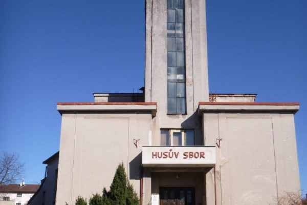 Funkcionalistická budova Husova sboru z roku 1935 pochází z dílny místního stavitele Františka Pivce. Hlavní západní průčelí s dominantní věží, která má na vrcholu dvojramenný kříž s kalichem, se obrací do ulice 5. května. Úzká parcela a natočení věže do ulice byly příčinou nezvyklého půdorysného zalomení budovy. V roce 1941 byla v zadní části přistavěna zimní modlitebna. Interiér je funkčně rozdělen na dvě samostatné části - sakrální a obytnou. V přízemí se nachází kancelář, sociální zařízení, chrámová loď s kolumbáriem. V prvním patře je byt duchovního. Ve věži sboru je umístěn zvon ze zvonařské dílny Josefa Šidlikovského z Lomnice.