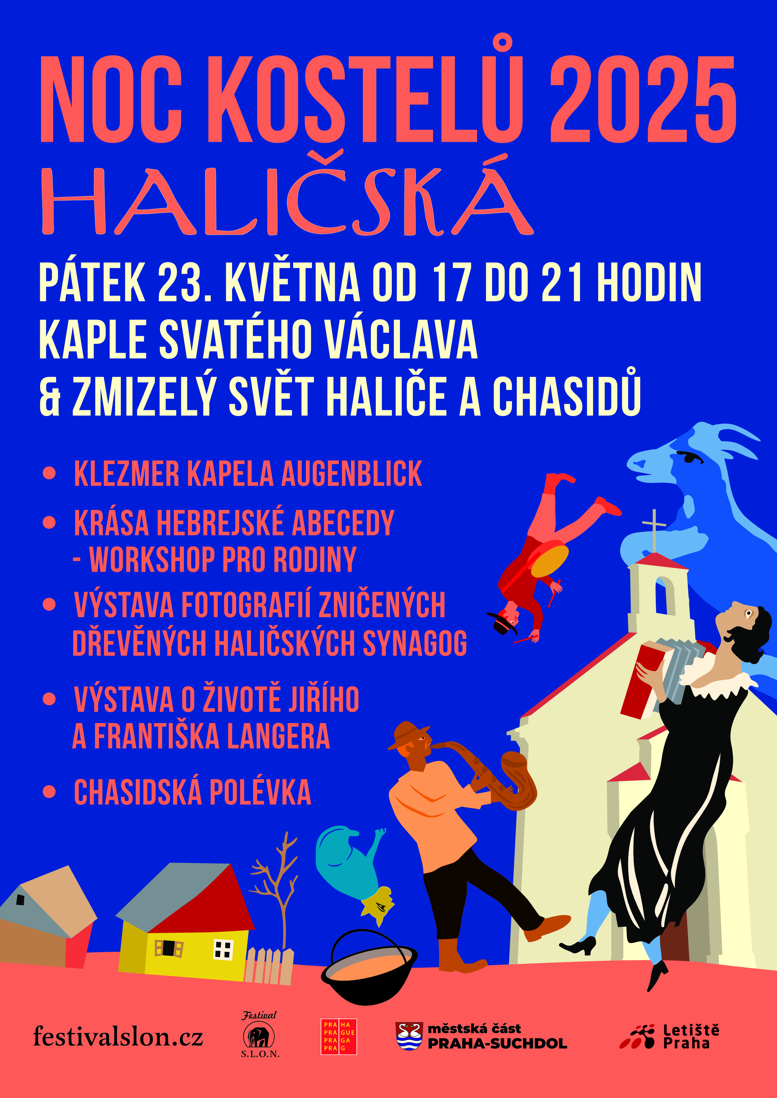 kaple svatého Václava & zmizelý svět Haliče a Chasidů klezmer kapela Augenblick krása hebrejské abecedy - workshop pro rodiny výstava fotografií zničených dřevěných haličských synagog výstava o životě Jiřího a Františka Langera chasidská polévka