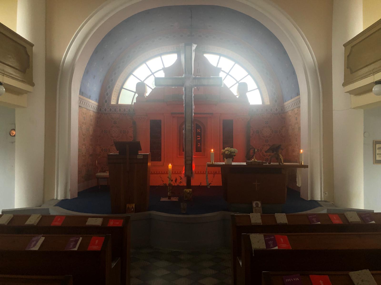 pravidelné bohoslužby vždy v 1. neděli v měsíci od 10.h