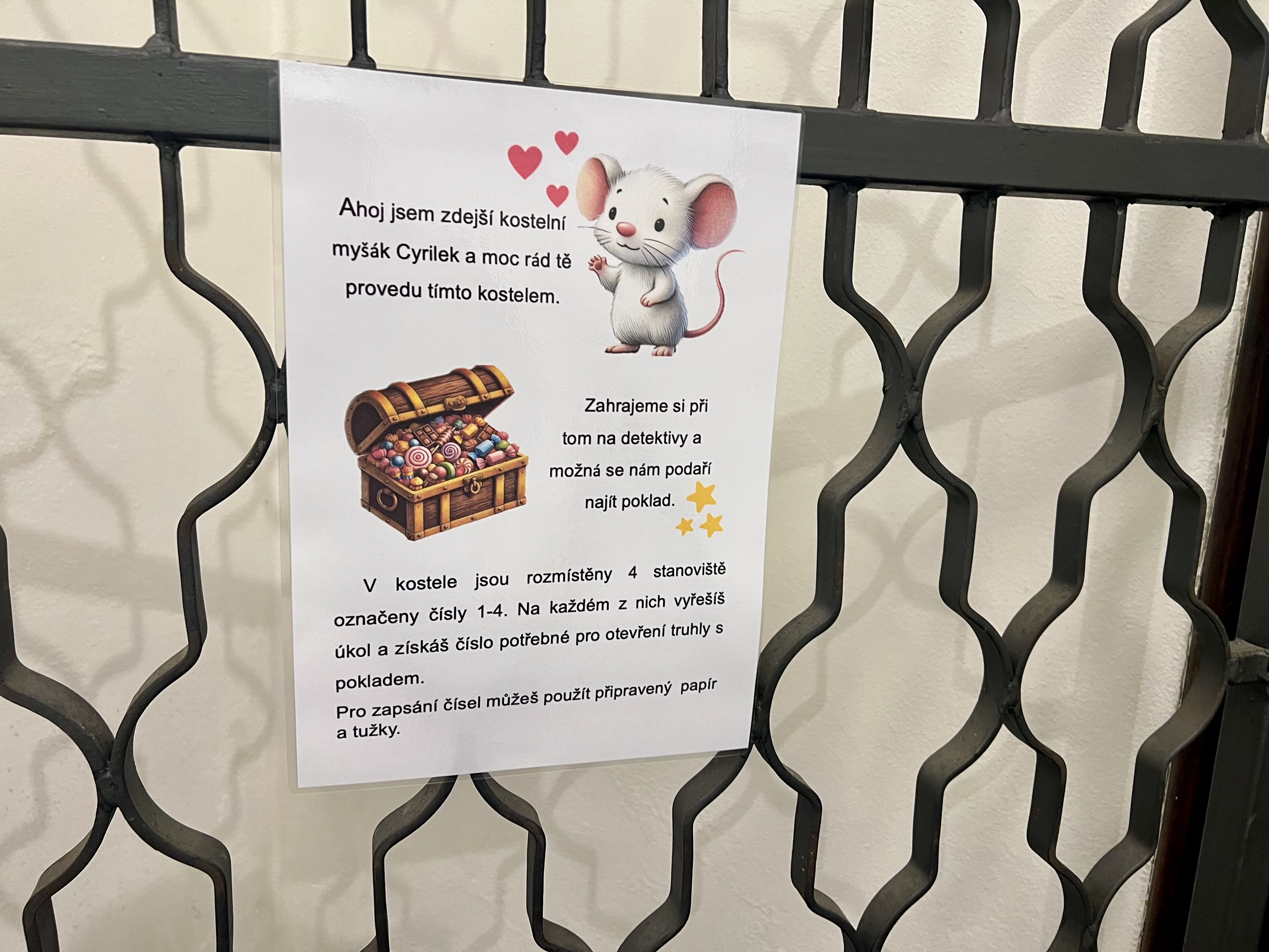 Kostelní myšák Cyrilek provede děti hrou kostelem a jeho okolím s malou odměnou na konci.