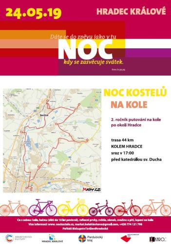 Využijte druhého ročníku speciality Královehradecké diecéze a zúčastněte se “Noci kostelů na kole”. Cyklistická skupina bude putovat po kostelích v okolí Hradce Králové, kde na ně bude čekat rozličný program. A v každém z nich dostanou památeční razítko do putovního pasu. Na konci cesty bude na kolaře čekat drobné občerstvení. Přijeďte s námi prožít krásu naší vlasti z kola a nádheru Božích chrámů.