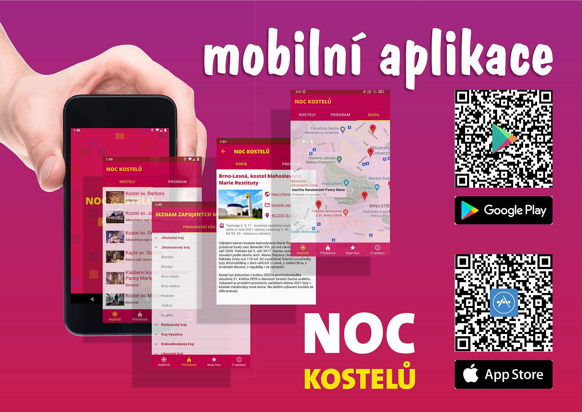 Aplikace Noc kostelů nově umožňuje ukládat navštívené kostely do „poutnického pasu“ a vytvářet si vlastní pořad Noci kostelů výběrem oblíbených programů.