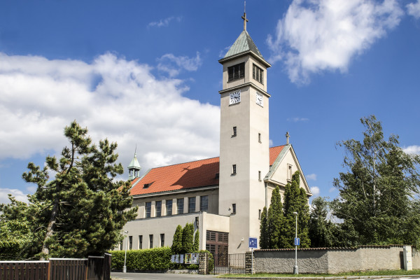 Kostel Panny Marie Královny míru byl vysvěcen v roce 1937. Je známý zvláště pro svou jedinečnou křížovou cestu od akademického sochaře Karla Stádníka. Presbytáři vévodí kopie sochy Panny Marie z mariánského sloupu, který stál až do svého stržení v roce 1918, a opět od roku 2020 stojí, na Staroměstském náměstí.