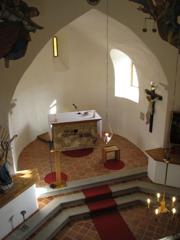 Loď a presbytář s původním kamenným oltářem a svatostánkem, byly postaveny najednou a tvoří harmonický celek. Proto byl původní prostor raně gotického presbytáře obnoven, neboť je dokonale architektonicky propracovaný, a zároveň odpovídá současným bohoslužebným předpisům.