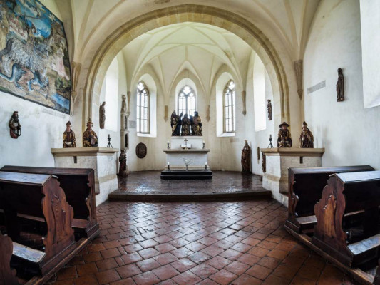 Hradní kaple Nanebevzetí Panny Marie byla postavena roku 1489 panem Půtou Švihovským z Rýzmberka, jak dokládá dochovaný nápis. Prostor kaple obsahuje ukázku gotického umění, oltář a sochy čtyř církevních otců z 16. století. Vzácná nástěnná malba zpodobňuje Jindřicha z Rýzmberka jako sv. Jiří a statky, které vlastnil. Je zde znázorněn i švihovský hrad v podobě kolem roku 1520, tedy v době jeho největší slávy.