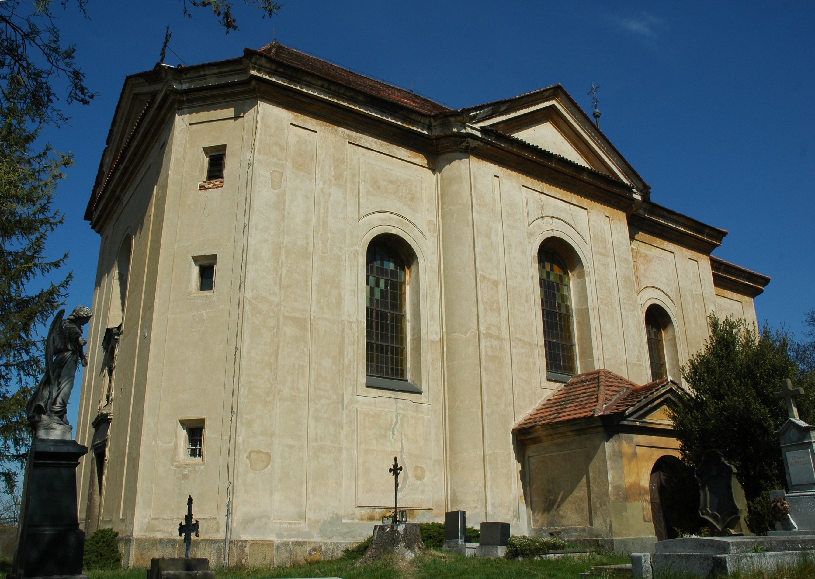 Kostel je obehnán barokní ohradní zdí s hřbitovní branou. V rohu hřbitova stojí barokní márnice s kostnicí.