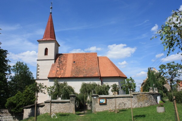 Starobylý venkovský kostelík zasvěcený Nejsvětější Trojici. Je obklopen malým hřbitovem. Nápis nad vchodem praví: „Tato věž byla postavena r. 1888 nákladem záduší ku starobylému kostelíčku, jenž pochází z první polovice XIV. věku.“ V interiéru zbytky středověkých fresek. Na levém bočním oltáři pozdněgotická malba, tzv. Pouchobradská deska - Panna Maria mezi sv. Kateřinou a Barborou - zapůjčena Národní galerii.