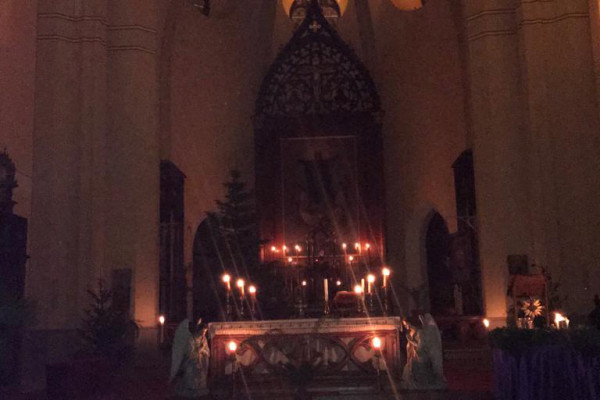 Farníci organizující noc kostelů se setkají ke krátké modlitbě za návštěvníky kostela. |