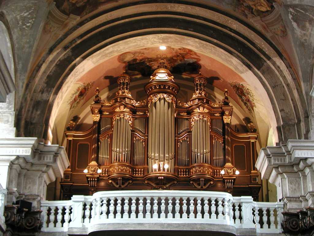 Chrám Povýšení svatého Kříže patří mezi vůbec nejcennější stavby ve městě. Vznikl v letech 1687–1691 jako zámecký kostel. O jeho výstavbu se zasloužil hrabě Maxmilián Thun a zejména jeho mladší bratr Jan Arnošt, kníže arcibiskup salcburský. Jedná se o sálový kostel na půdorysu latinského kříže završený vysokou centrální kupolí s lucernou. Jeho průčelí je zdobeno řadou barokních soch. Atiku korunují postavy sv. Heleny s křížem a čtyři andělé nesoucí nástroje Kristova umučení. Vedle hlavního vchodu jsou v nikách umístěny postavy sv. Veroniky a Máří Magdaleny.