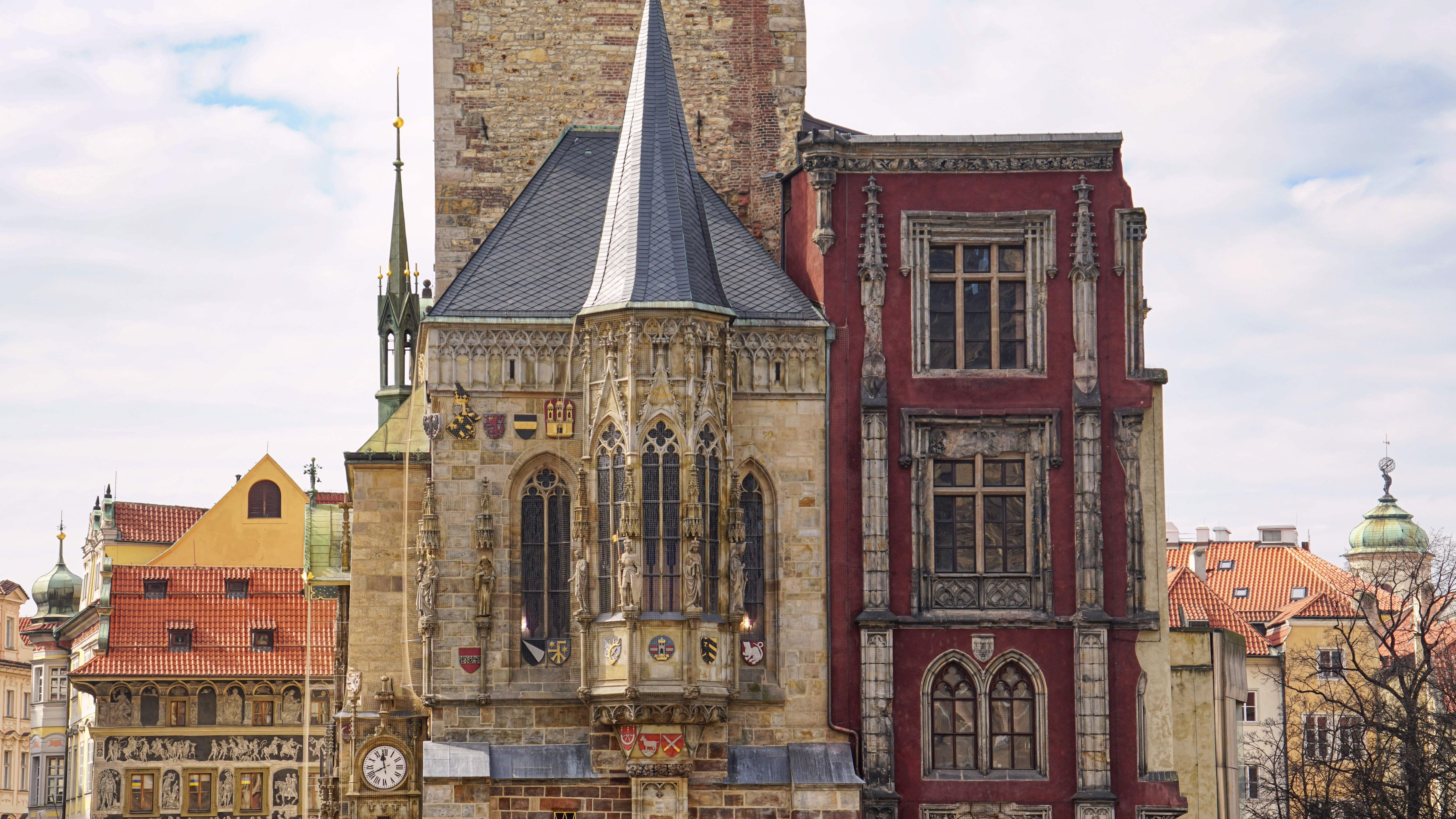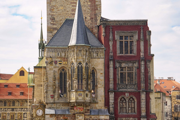 Gotická kaple Panny Marie ve Staroměstské radnici patří k nejvzácnějším stavitelským památkám v Čechách. Spolu s obdobnou kaplí v budově Karolina je jediným dílem svého druhu v Praze. Nachází se v prvním patře radniční věže. Má gotická okna s kružbou, štíhlou jehlancovitou střechu s křížem a její průčelí je zdobeno kamennými znaky a sochami.