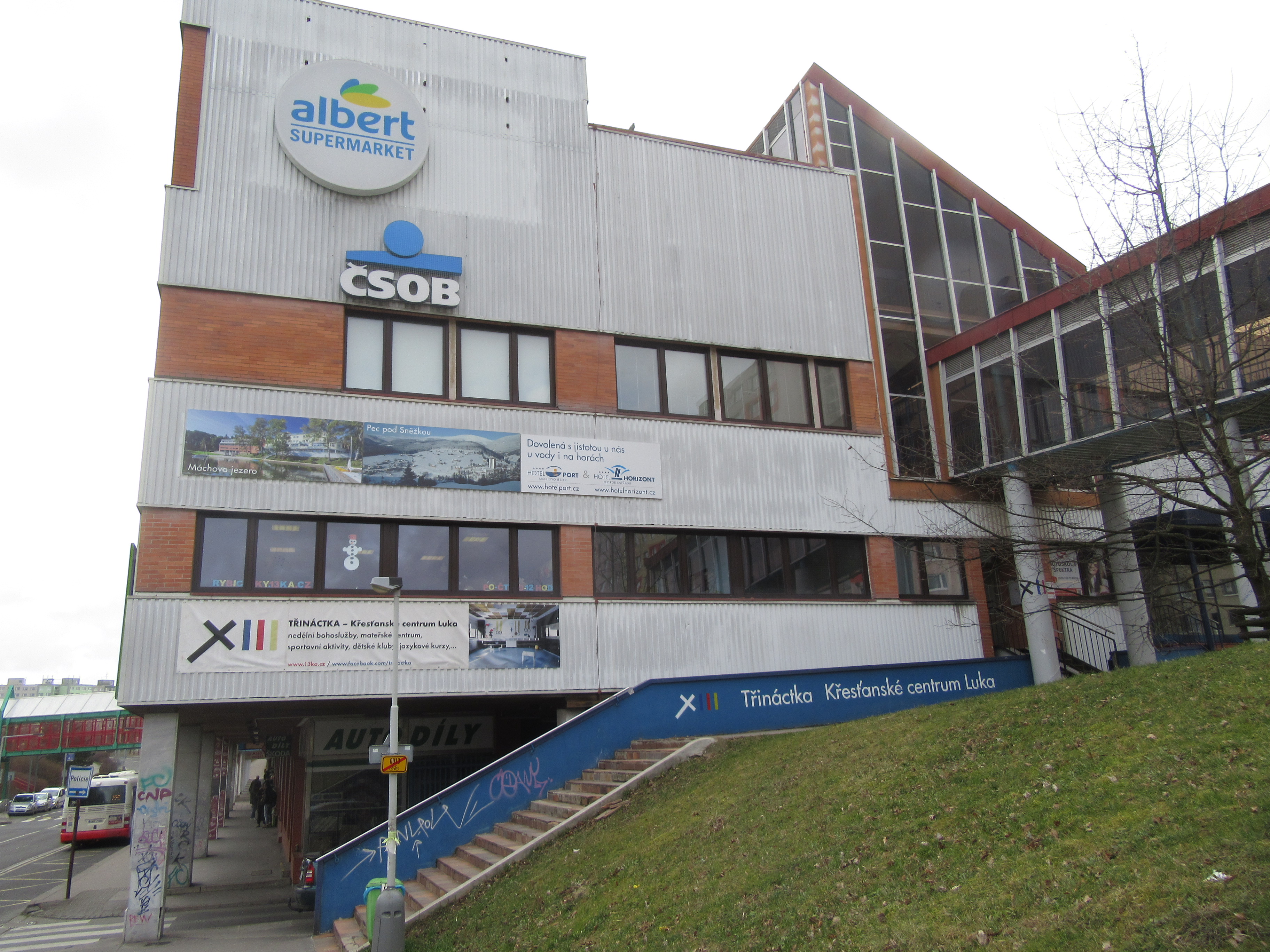 Na Praze 13 jsme se dříve scházeli v aule gymnázia J Heyrovského. Pak jsme zrekonstruovali bývalé učňovské středisko v obchodním centru Luka a v 2011 jsme ho otevřeli (nejen) pro obyvatele Prahy 13, kteří mohou během týdne navštěvovat některou z aktivit Křesťanského centra či v neděli přijít na bohoslužby od 9 h či 11 h. ( Od 11 hod i s tlumočením do angličtiny.)