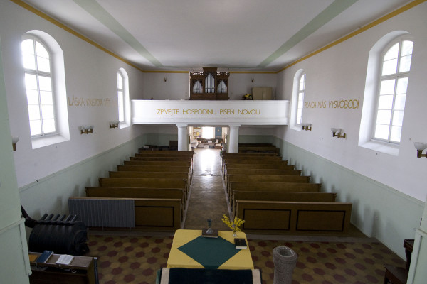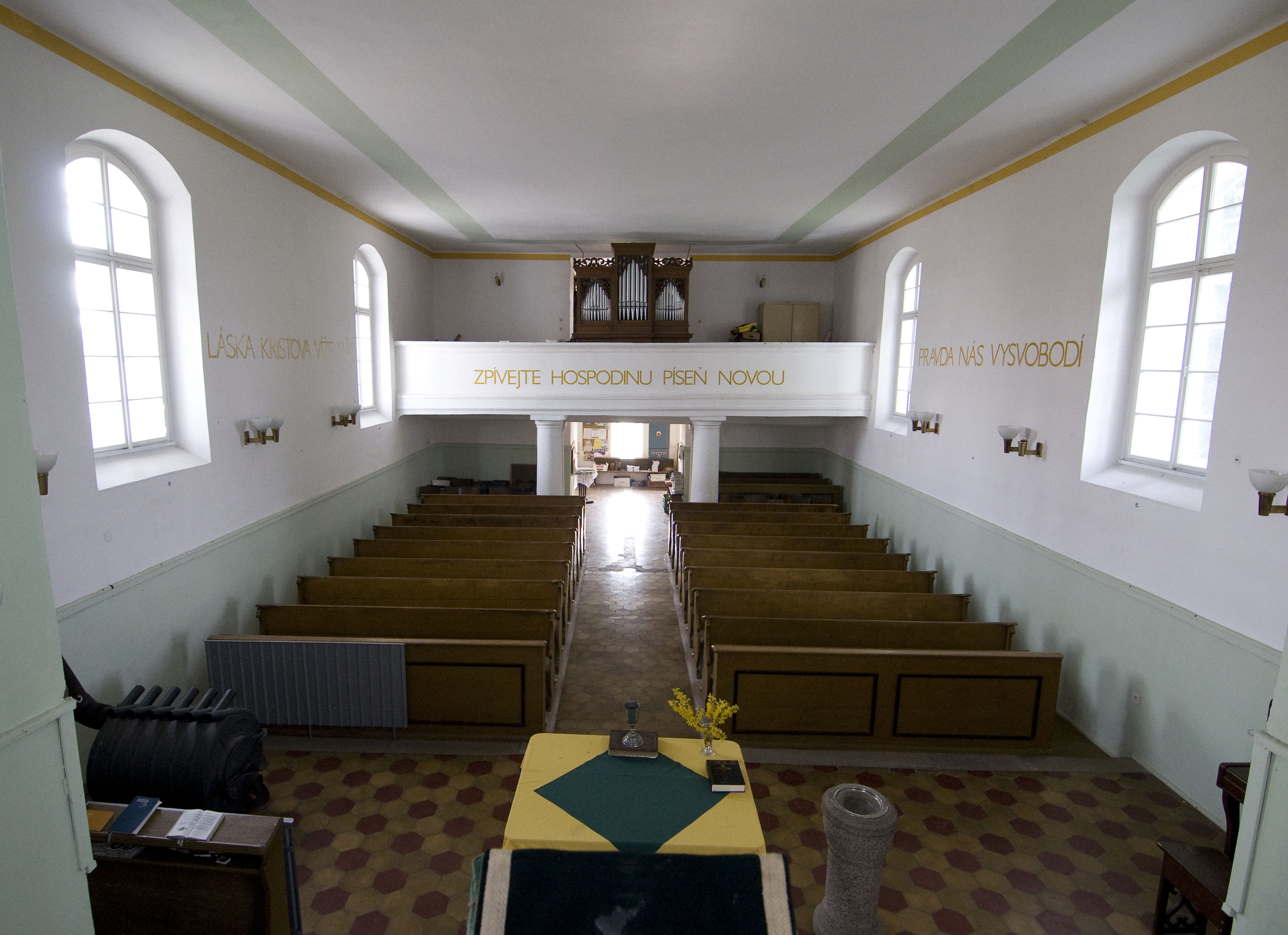 Toleranční kostel z roku 1787, věž přistavěna 1909.
