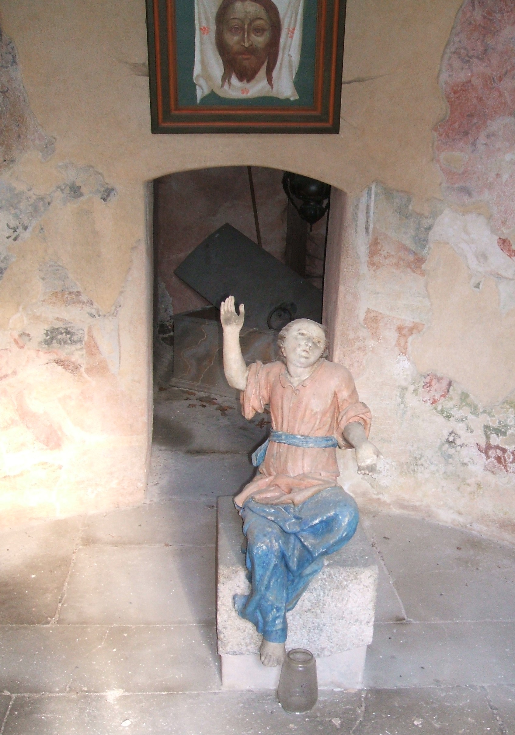 Vlastní stavba se skládá ze dvou prostor (místností). Přední místnost s kamenem, který má připomínat kámen uzavírající hrobku, se nazývá andělská kaple. Podle evangelia na kameni seděl anděl, který zvěstoval vzkříšení Ježíše. Druhá místnost je vlastní hrobka (pohřební komora), kde bylo uloženo tělo Ježíše. Před vchodem jsou položeny dva kamenné kvádry znázorňující lavice, na kterých seděli vojáci, kteří hlídali mrtvé tělo Ježíše, aby ho křesťané neunesli. Vlastní hrobka má zvenčí osmihranný tvar. Nad plochou střechou vystupuje šestihranná kamenná lucerna sestavená ze šesti párů dvojstupů a zakončená kamennou kupolí.