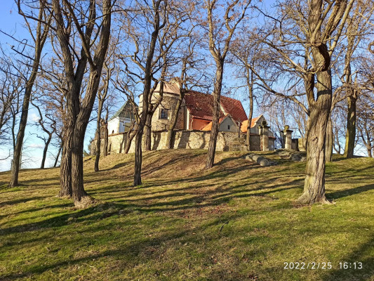 Kostel byl založen ve 12.století. Následně byl během staletí rozšířen ve čtyřech fázích a čtyřech slozích. Stojí na vrcholu kopce kousíček za Prahou - s výhledem na Sněžku, Říp, Bezděz a Ještěd.