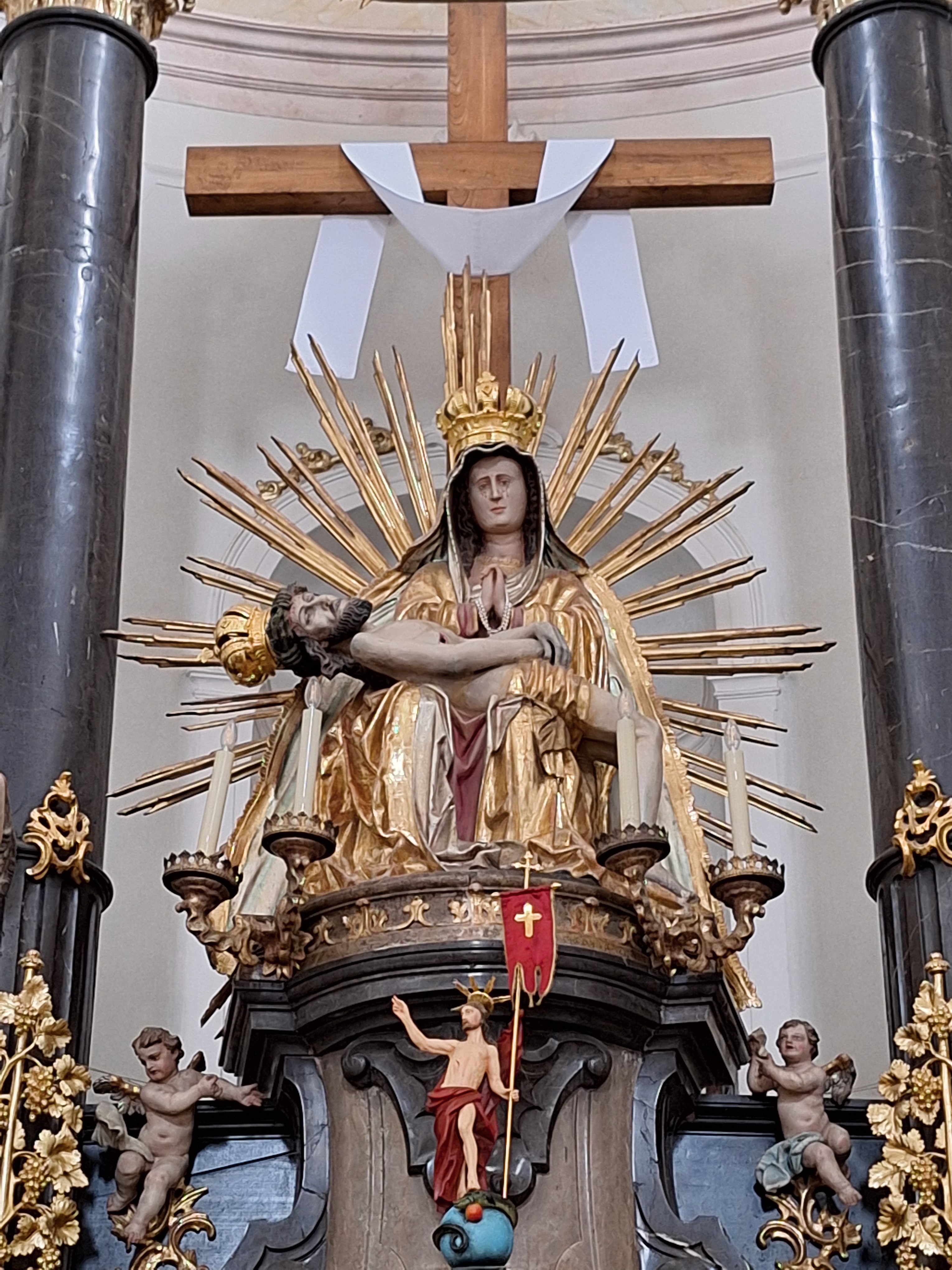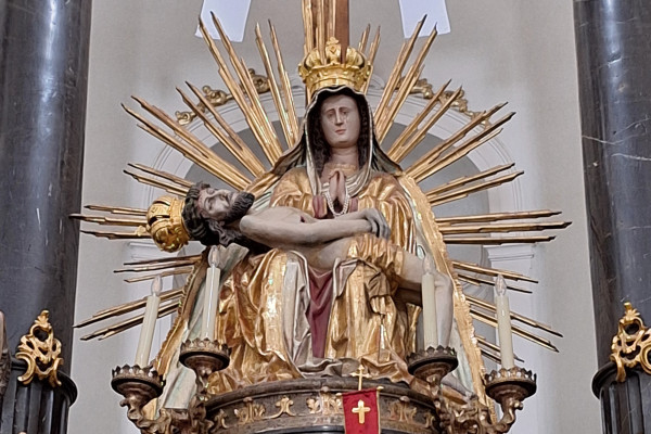 MÍSTO JUBILEJNÍHO SVATÉHO ROKU 2025 SPOJENÉHO S PLNOMOCNÝMI ODPUSTKY. Mariánské poutní místo s kostelem Panny Marie Bolestné z roku 1754. Poutní místo je spojeno s úctou k milostné soše Panny Marie Bolestné, která ve Sloupě trvá již téměř 300 let. Hlavní poutní slavností je Květný pátek - pátek před Květnou nedělí, která se slaví týden před Velikonocemi. Poutní sezóna trvá od jara do třetí říjnové neděle. Jednotliví poutníci jezdí celý rok. Kostel je vyzdoben freskami a obrazy malíře Kašpara Sambacha, ředitele vídeňské Akademie, které jsou v Česku významnou a vyhledávanou ukázkou jeho umění. V kryptě kostela je pohřbena zakladatelka chrámu, hraběnka Karolina z Roggendorfu.