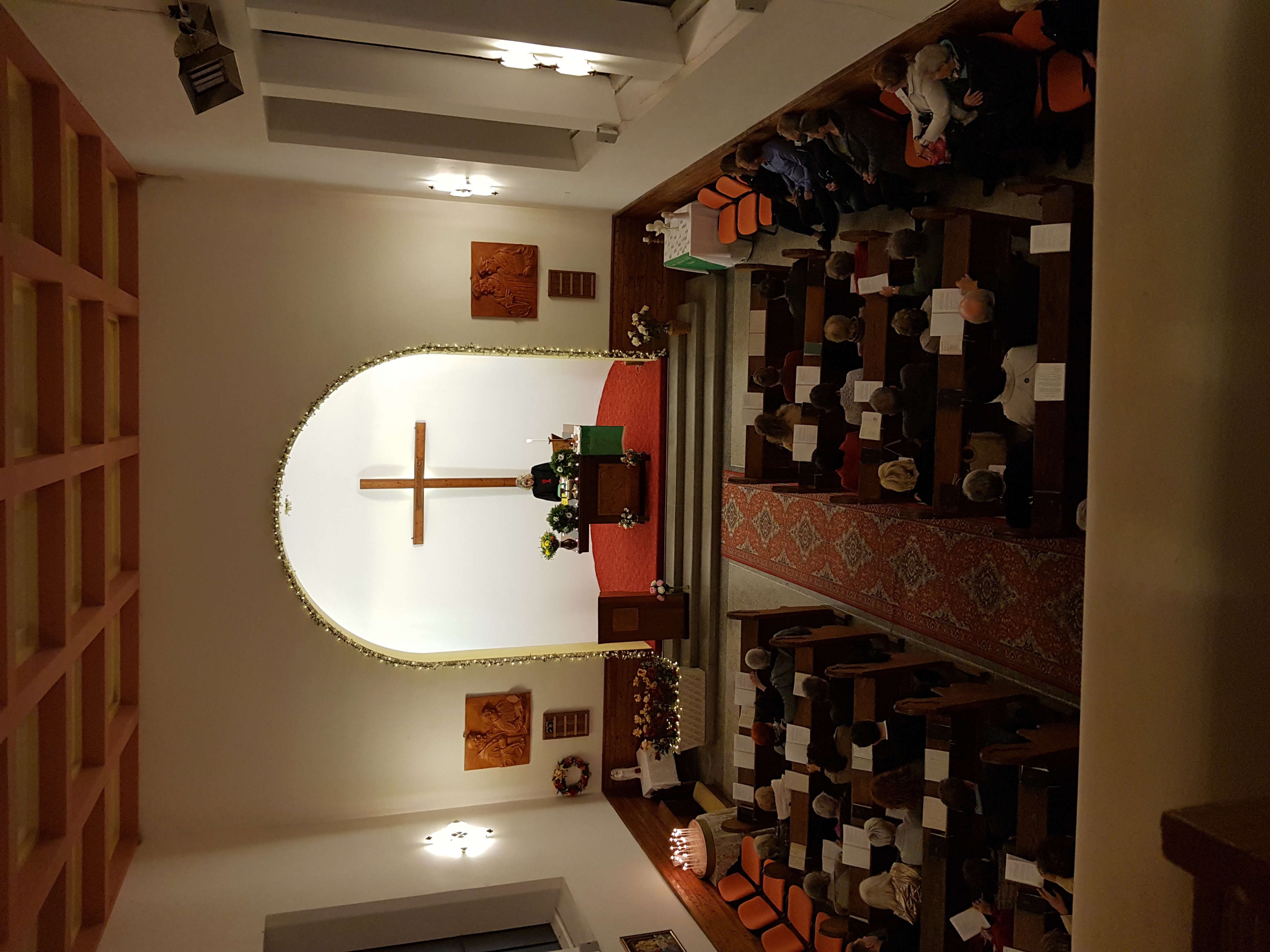 Prohlídka sakristie, kůru s kolumbáriem. Ukázka liturgických oděvů duchovních naší církve. |