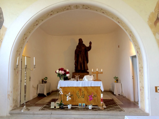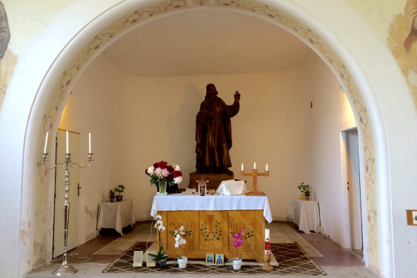 Základní kámen kostela, socha Ježíše Krista v nadživotní velikosti, schránka s prstí země z bojiště ve Verdunu aj. |