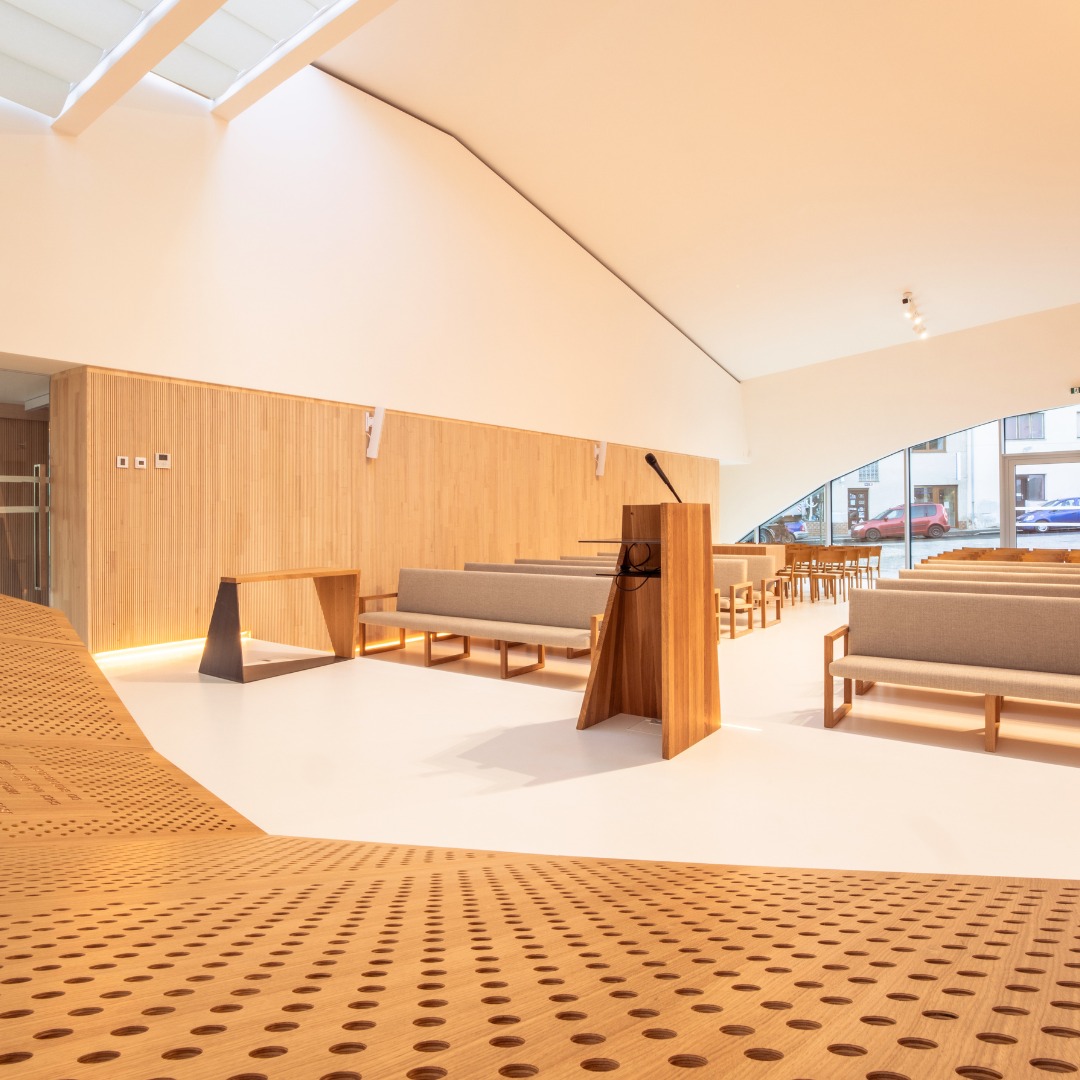 Unikátní moderní sakrální budova, postavená v r. 2020, která spolu se sousedícím společenským centrem získala ocenění Stavba roku 2020. Svým tvarem připomíná krystal vystupující vzhůru ze země.