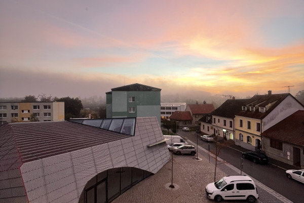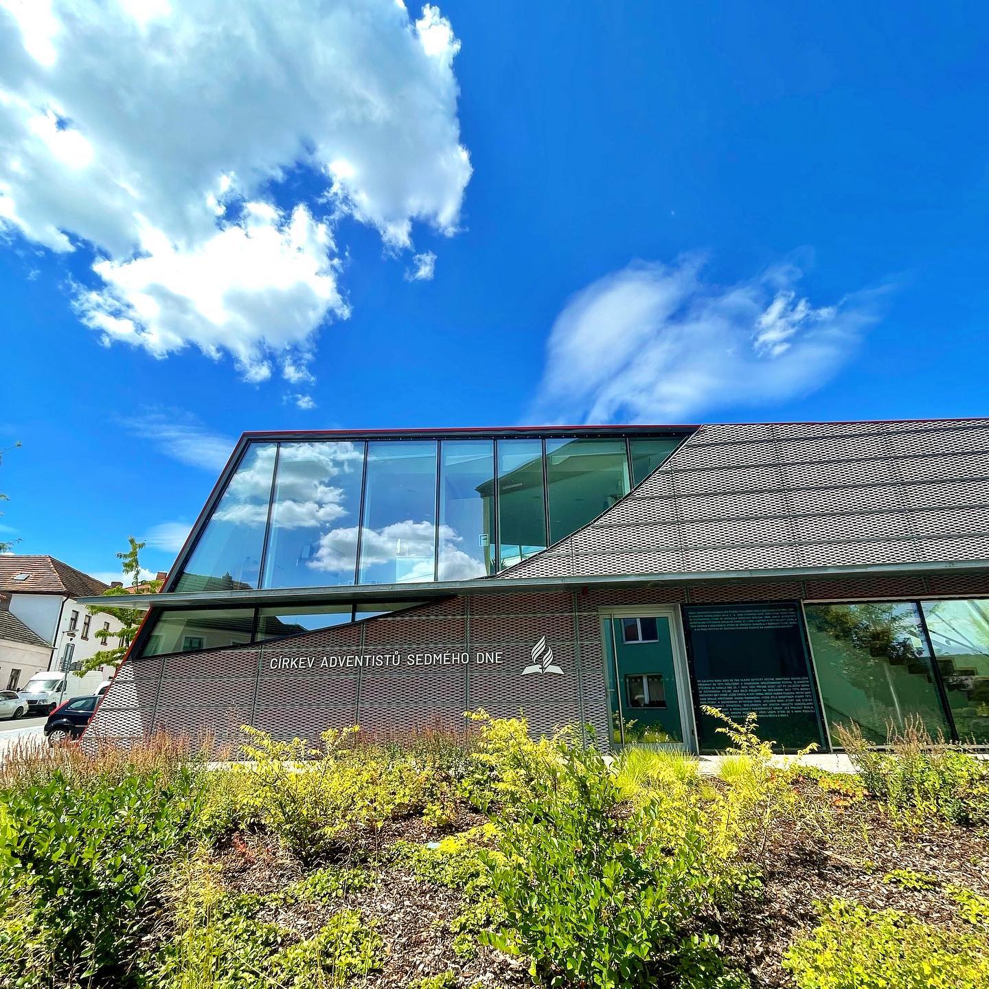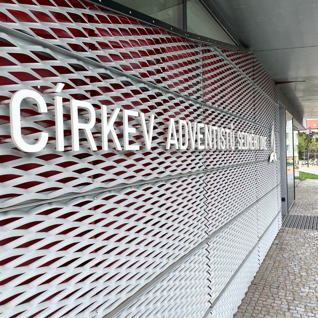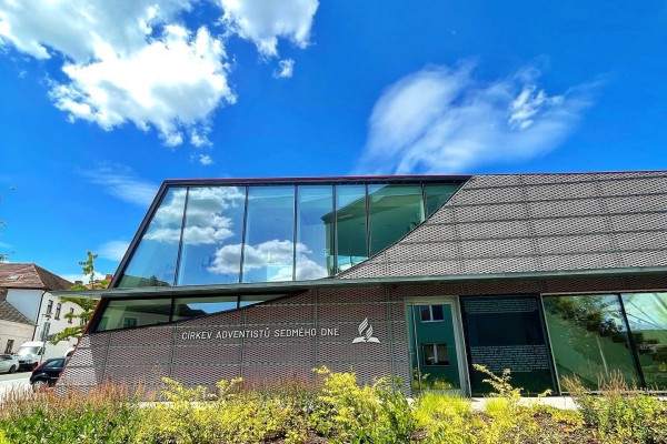 Exteriér je kombinace skla a červené fólie kryté tahokovem. Díky tomuto prvku se barva fasády plasticky mění během dne podle polohy slunce a úhlu pohledu pozorovatele. Bohaté prosklení symbolizuje otevřenost Církve adventistů sedmého dne.