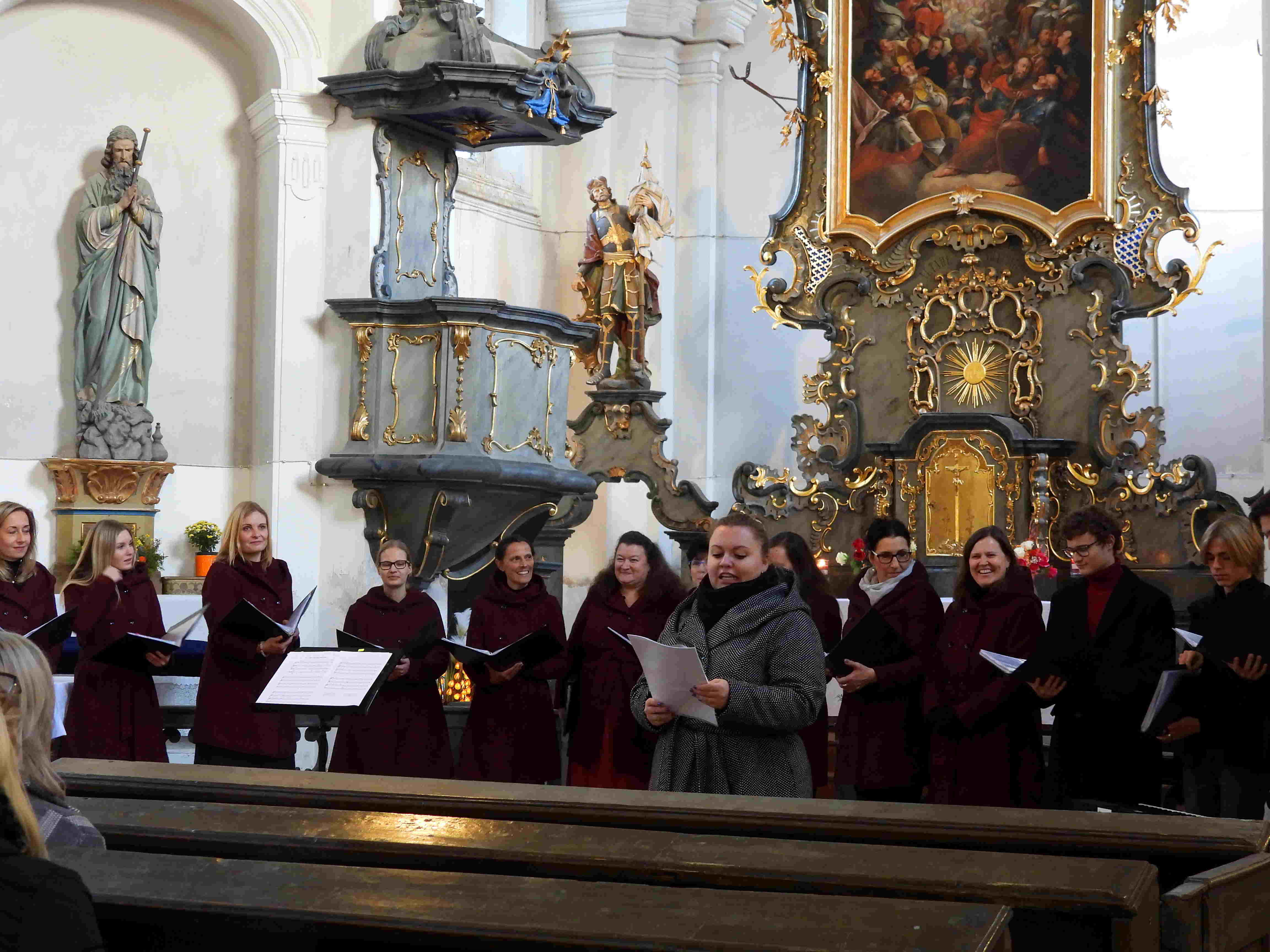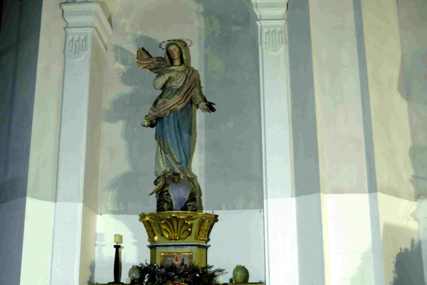 V nivách triumfálního oblouku jsou sochy: vpravo směrem k hl. oltáři je socha Pany Marie a vlevo je socha sv. Jakuba. Obě jsou řezané v Grudenu tyrolském roku 1890, mistrem J. Runggaldierem