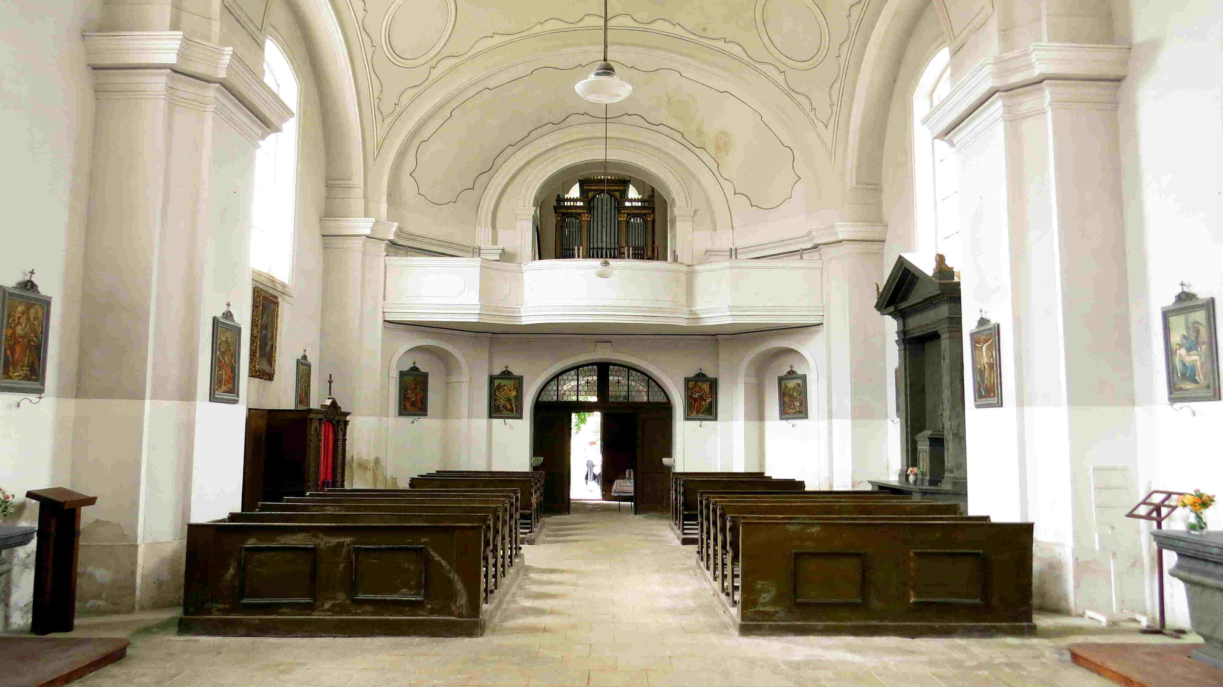 Kostel je jednolodní, s pravoúhle uzavřeným presbytářem, se sakristií v ose a věží před západním průčelím. Okna jsou pravoúhlá, se segmentovými záklenky. Vnitřek je zaklenut a zdoben štukovými vykrajovanými zrcadly. Stěny jsou členěny polopilíři, ostění triumfálního oblouku je s mělkými nikami. Kruchta má vypnutý střed.