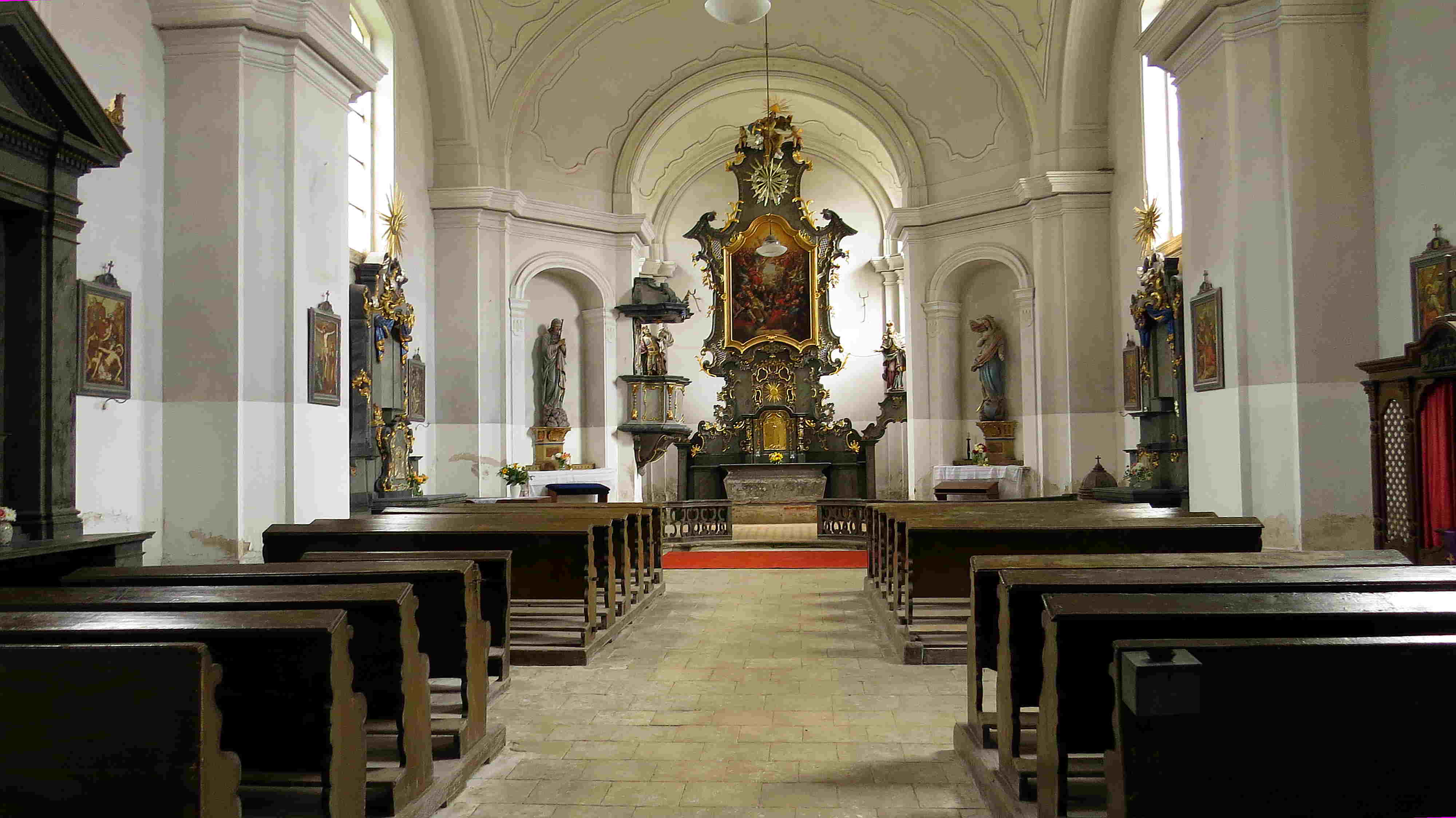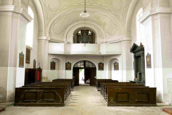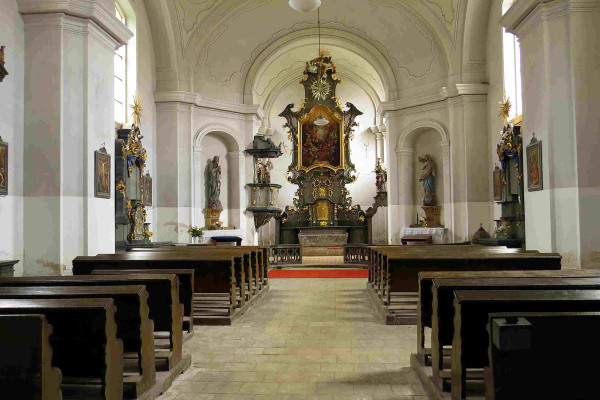 V místech současného barokního kostela stával starší kostel obklopený hřbitovem. Přesná doba založení prvního kostela není známa, původní dřevěný kostel s dřevěnou zvonicí je poprvé zmiňován roku 1315 jako farní. Po roce 1705 však vyhořel. Poté byl vystavěn kostel nový a mobiliář pochází převážně z tohoto období.