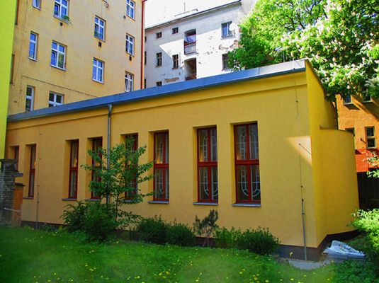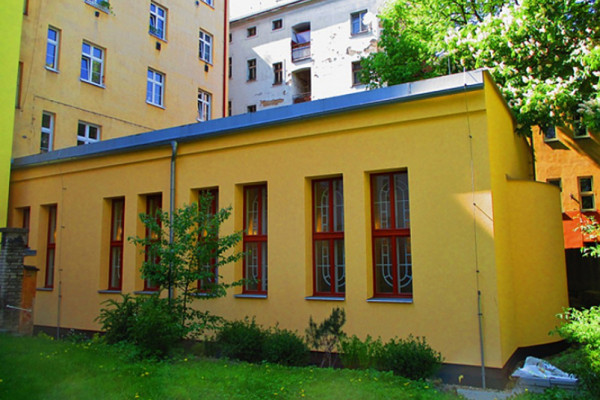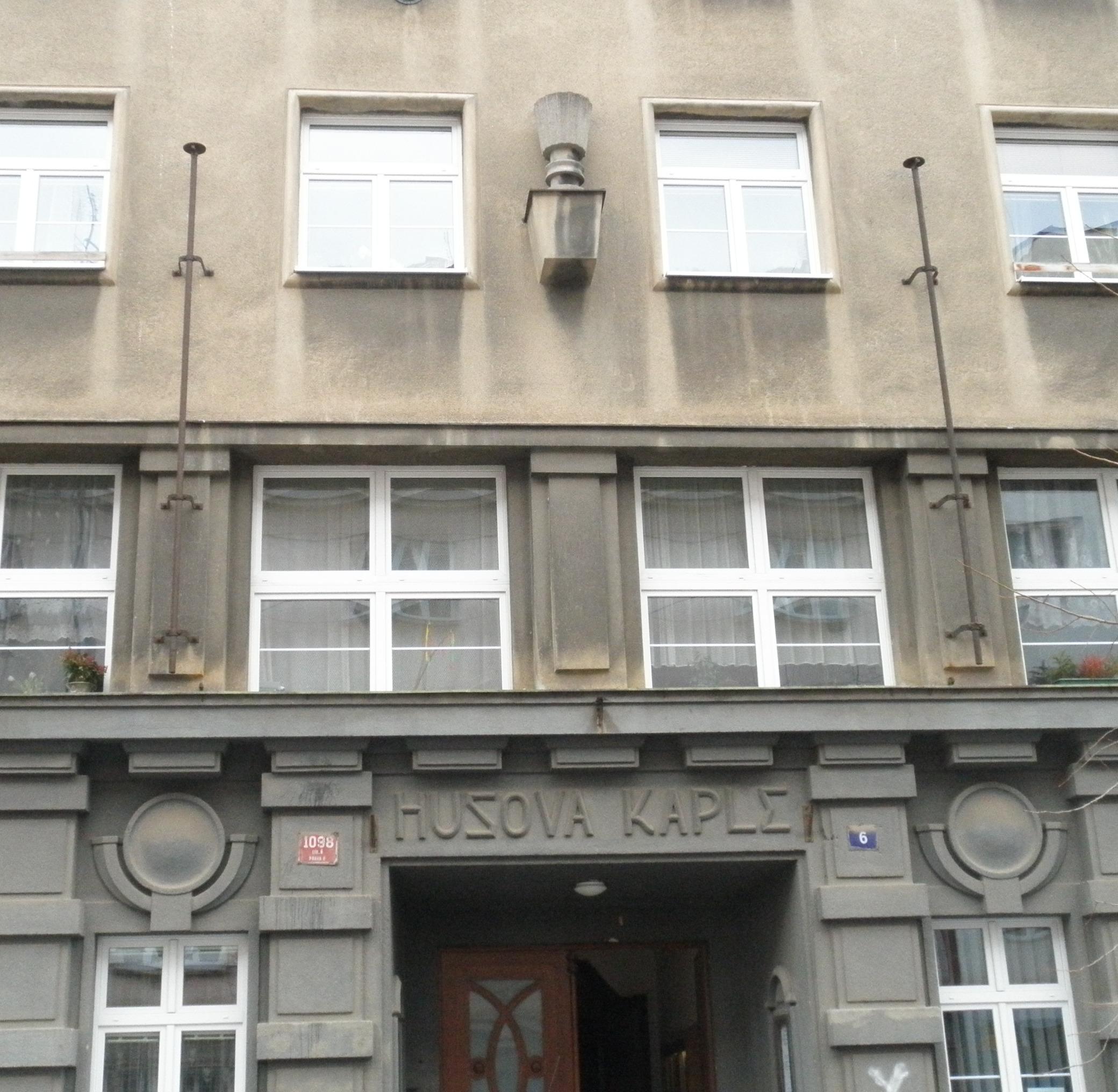 V roce 1922 staví libeňští svou modlitebnu – Husovu kapli, která je situována od ulice dozadu do dvora. Od roku 1928 se zvedá nad sborovými kancelářemi a klubovnami (přivrácenými k ulici) bytový dům. Relativně velká kaple (kapacita do 150 míst) je tak od té doby „ukryta“ v navenek běžném činžovním domě. Činžák je ovšem na svém průčelí opatřen nápisem HUSOVA KAPLE a kalichem jako typickým evangelickým symbolem.