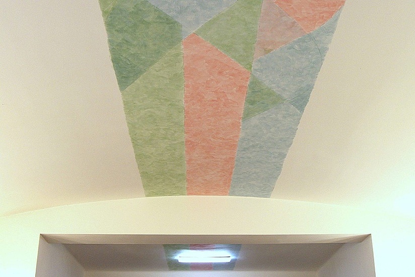 Jedinou výzdobou kaple je tak tříbarevný motiv na stropě kaple, který nese dvojí význam. Za prvé symbolizuje tři křesťanské poklady: naději, lásku, víru. Pruh naděje je zelený. Co je ve světě přirozeně zelené, to roste a má budoucnost. Červený je pruh lásky. Odkazuje ke krvi a oběti, kterou láska přináší pro své milované. Víru symbolizuje pruh modré barvy, barvy nebes. Tři pruhy také napovídají, jak se ony poklady víry mají projevit v každodenním životě věřících křesťanů: v duchovním životě, ve službě druhým, v přijetí křtu. Zeleně roste a prohlubuje se duchovní život jednotlivých křesťanů. Červenou barvu má obětavá služba, která dokáže prolít pot i krev pro druhé. Modrý pruh křtu má barvu vody, která smývá hříchy.