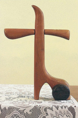 Libeňský dřevěný kříž lze rozložit, jednotlivé části mají následující symboliku: Vertikální břevno znázorňuje Boží sklonění a vtělení v příběhu Ježíše Krista. Bůh má o svět a člověka velký zájem, nejsou mu lhostejní. Horizontální břevno je horizontálou lásky. Stylizovaný otvor připomíná Kristovo zrození i smrt. Zrození v jeskynní stáji i jeskynní hrob, který byl zavalen kamenem. Boží láskou a mnohým hříšným lidským odporem proti ní byl Ježíš přiveden až na kříž, který vznikne složením obou břeven.