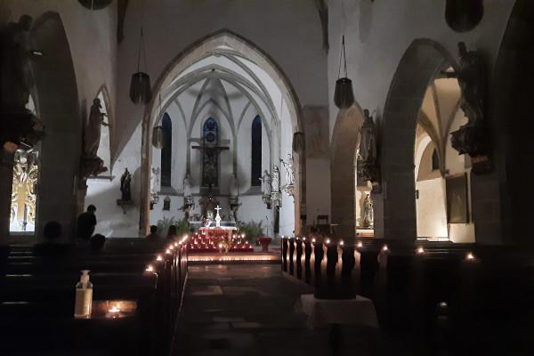 Kostel ve světle svíček bude přístupný k prohlídce, modlitbě, meditaci... |