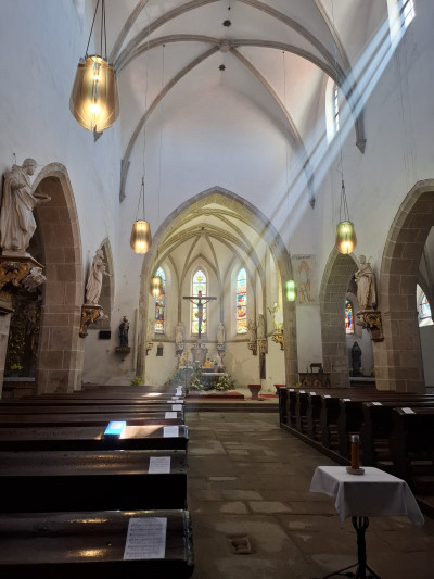 V kostele jsou k dispozici svíčky z recyklovaného vosku v rámci farního projektu na podporu opravy kostela. |