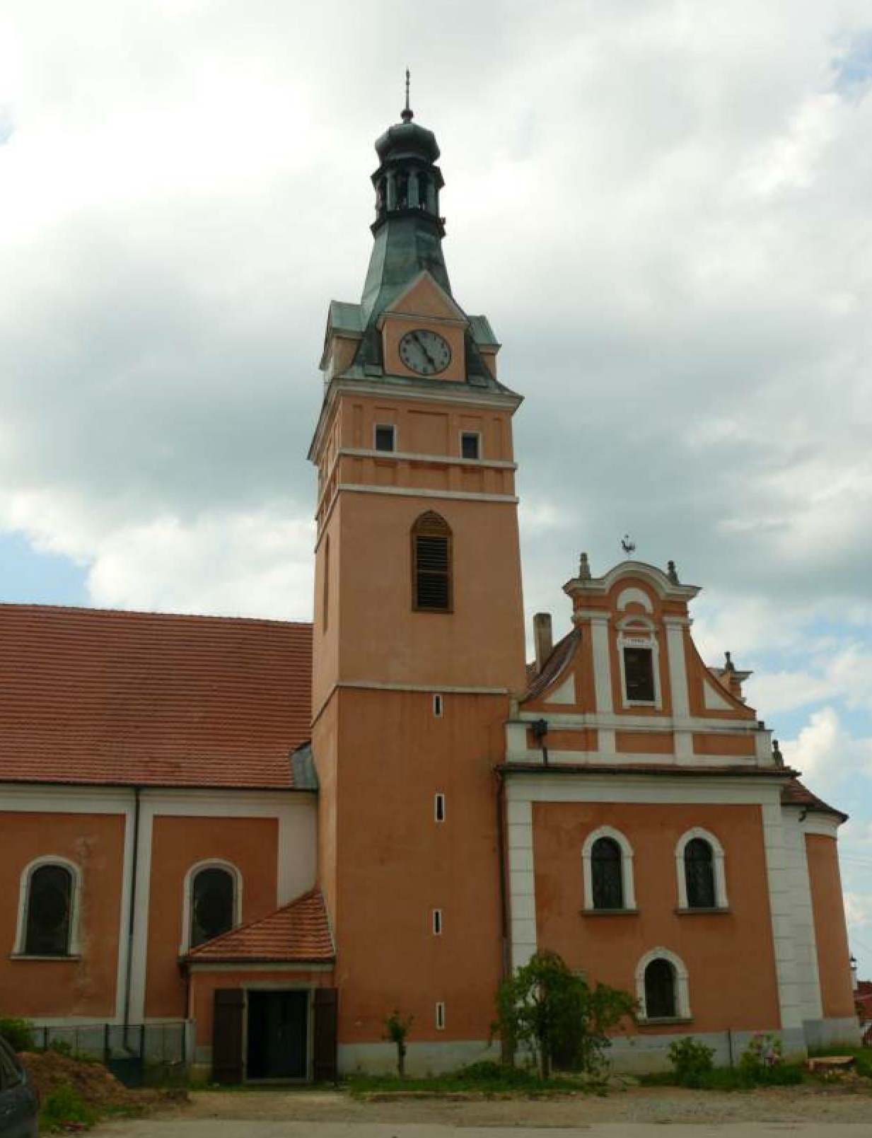 Obec se připomíná r. 1263 jako majetek zlatokorunského kláštera, od r. 1420 v majetku Rožmberků. R. 1437 - 1547 v držení Tábora, od r. 1547 opět v majetku Rožmberků. R. 1544 povýšena na městečko. Plebanie z konce 14. stol., matriky od r. 1694. Kostel původně gotický, poškozen r. 1560, přestavěn v letech 1734 - 1740, r. 1904 prodloužen presbytář.