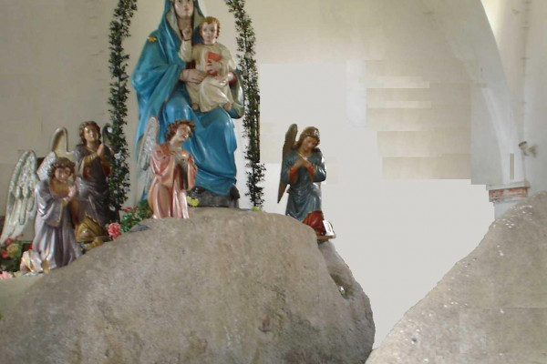Ve 20. letech 17. století se objevují informace o mimořádných zjeveních spojených s posvátnými kameny zdejšího místa a také o uzdravujícím účinku zdejší vody. Proto r. 1655 nechaly krumlovské klarisky (abatyše Pöpperlová) jimž pozemky patřily, zbudovat kapli vedle kamenů, která se pak stala presbytářem kostela který byl dostavěn v průběhu 18. století. Vznikla též křížová chodba. Místo se stalo hojně navštěvovaným poutním místem.
