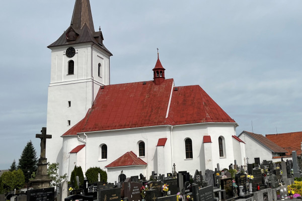 Kostel se nachází v centru obce. Postaven byl v roce 1631. Je to velmi hodnotná stavba z období 30-leté války postavená v románském slohu. Jedná se o státní kulturní památku, jednu ze čtyř v obci. Kostel je z kamene, podepřený devíti silnými pilíři. Strop presbytáře je klenutý. Věž kostela je vysoká 38 m. V roce 2021 prošla věž rekonstrukcí. Byly částečně vyměněny dřevěné střešní krovy, krytina a věž dostala novou fasádu. Do nejvyššího podlaží věže je potřeba vystoupat 93 dřevěných schodů. Kostel má ve veži tři zvony - sv. Jan Křtitel (420 kg), sv. Anežka Česká (220 kg) a sv. Václav (180 kg). Čtvrtým zvonem je tzv. umíráček nachází se v malé věžičce nad presbytářem. Kostel je vybaven elektrickými varhanami z roku 1939 . Varhany mají 15 hracích a 21 pomocných rejstříků a jsou vyrobeny z 1300 kovových píšťal.
