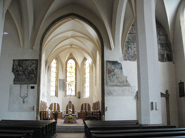 Pozoruhodnou památkou pozdně gotického nástěnného malířství jsou zejména kresba "Obléhání Bělehradu" v presbytáři a fragmenty nástěnných maleb v kostelní lodi. Pozoruhodná je také osmiboká jehlancová střecha. Kostel je součástí původně františkánského, nyní dominikánského kláštera.