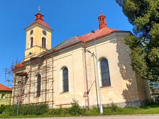 Empírový kostel pochází z počátku 30. let 19. stol. Zbudován na místě předešlého středověkého kostela ze 14. stol., strženého r. 1830. V letech 1981-82 generálně opraven. Jednolodní neorientovaná stavba s trojboce zakončeným závěrem, s hranolovou věží nad západním průčelím a sakristií při severním boku závěru.