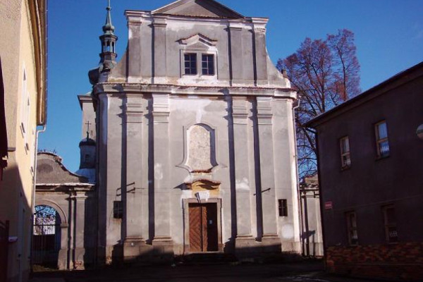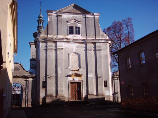 Původně pozdně gotický kostel byl obnovován po požárech města, v roce 1699 byla stavitelem Johannem Michaelem Sockhem přistavěna severní boční kaple Krista Trpitele, v letech 1738-42 byl barokně přestavěn stavitelem Johannem Schmiedem z Útviny (byl rovněž stavitelem slavného poutního kostela ve Skocích či sv. Anny v Sedleci u K. Varů). Z původní pozdně gotické stavby se dochovala hranolová věž, původně patrně zakončená osmibokou nástavbou. V přízemí věže je zaklenutá prostora, patro věže bylo původně přístupné vnějším schodištěm, kamenným portálkem, věž sloužila nejen k zavěšení zvonů, ale i k obraně města. Zvláštností věže je chybně sesazené kamenné ostění střílnovitého okénka. Nelze vyloučit, že gotický může být i presbytář a loď kostela, byť barokně upravený. Klenby jsou barokní, zajímavostí kostela jsou malované nástěnné iluzivní oltáře od malíře J. J. Kramolína z roku 1778. Mobiliář je většinou novodobý nebo z 2. poloviny 18. století. Ve věži byly zavěšeny čtyři zvony, dnes jen dva. V kostelním dvoře, který uzavírají brány po stranách průčelí kostela, stojí budova bývalé školy a vedle pak tzv. stará fara. Do 18. stol. byl kolem kostela hřbitov, dnešní kaple Olivetské hory sloužila zřejmě jako márnice. Za kostelem se dochovaly zbytky městské hradební zdi a ve farní ulici stojí tzv. nová fara, dnešní děkanství z doby barokní přestavby kostela.
