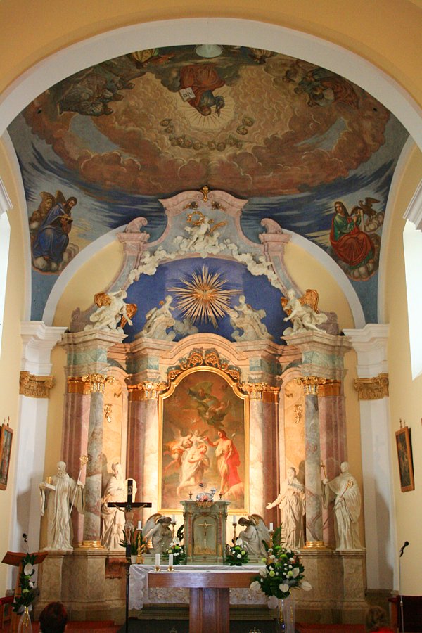 Hlavní oltář je zděný, v roce 2014 zrestaurovaný do původní podoby, jakou měl před 250 lety. Náročná oprava byla hrazena kromě sbírek farníků také příspěvkem obcí, které patří do farnosti, státní dotací a přispěním evropských fondů.