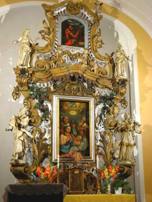 Vnitřní zařízení oltář a obětní stůl je mimořádně cenné.