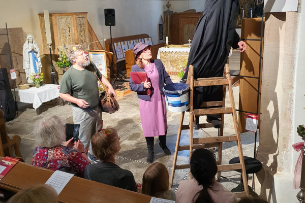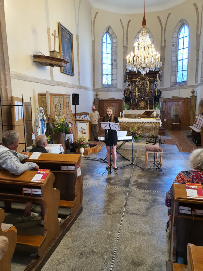 V roce 1946 dal místní vikář, vlastenec, spisovatel a historik Josef Ressell (1884 – 1966) kostel znovu vymalovat – a při té příležitosti odkryl v kněžišti zbytky po raně gotických klenebních žebrech. Ze zrušených kostelů v pohraničí přivezl nový zvon a renesanční sošky sv. Petra a Pavla, které umístil na oba konce zbytků vítězného oblouku (někteří tvrdí, že sošky zde byly již předtím a pocházejí z původního vybavení).