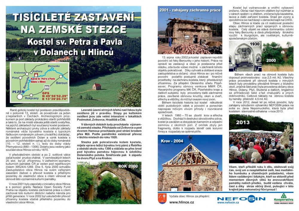 Všem, kdo jakýmkoliv způsobem přiložili ruku k dílu při obnově kostela sv. Petra a Pavla v Dolanech u Hlinců, patří upřímné poděkování.
