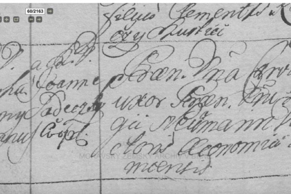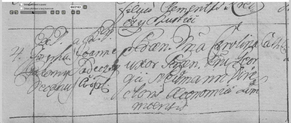 Praenobilis domina Carolina uxor praenobilis domini Georgii Neumann directoris aeconomia lomnicensis (urozená paní Carolina manželka urozeného pána Jiřího Neumanna ředitele ekonomického lomnického).